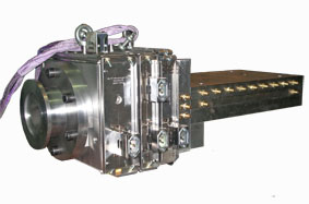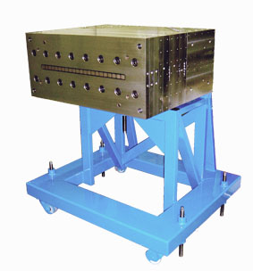 ![]() | Extrusions-Werkzeug für Balkon- und Terassen-Paneele (Hohlkammer-Panele) aus WPC (Wood Plastic Comoside) einem neuartigem Verbundstoff aus Holzfasern und Kunststoff. Die Profilteile sind im Gegensatz zu Holzpaneelen wasserfest und witterungsbeständig. Sie splittern nicht, sind formbeständig und verrotten nicht. Das Material wird unbehandelt verarbeitet und ist damit gut recycelbar. | |